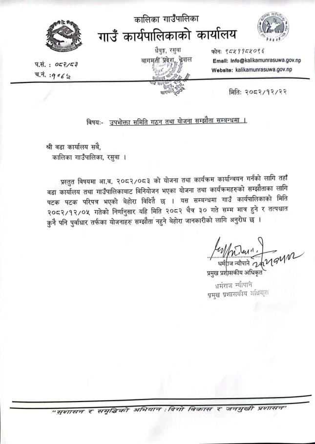 » उपभोक्ता समिति गठन तथा योजना सम्झौता सम्बन्धमा।