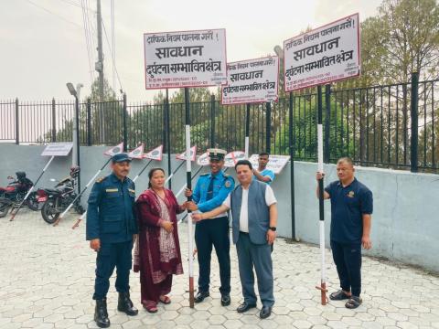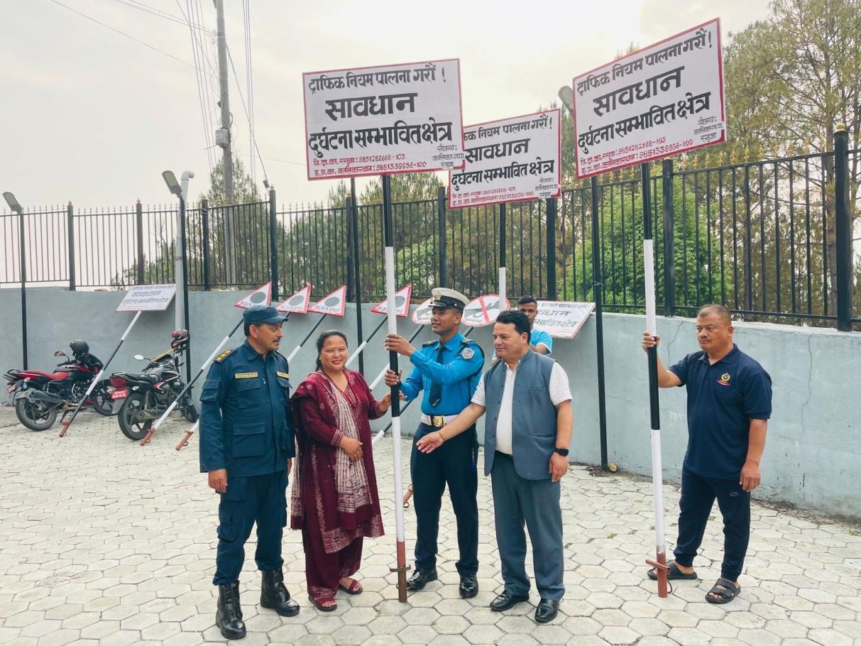 गाउँपालिकाका उपाध्यक्ष श्री मिरा तामाङ ज्यू र प्रमुख प्रशासकीय अधिकृत श्री धर्मराज न्यौपाने ज्यूले ११ थान ट्राफिक संकेत बोर्डहरू ट्राफिक प्रहरीलाई उपलब्ध गराउदै ।।