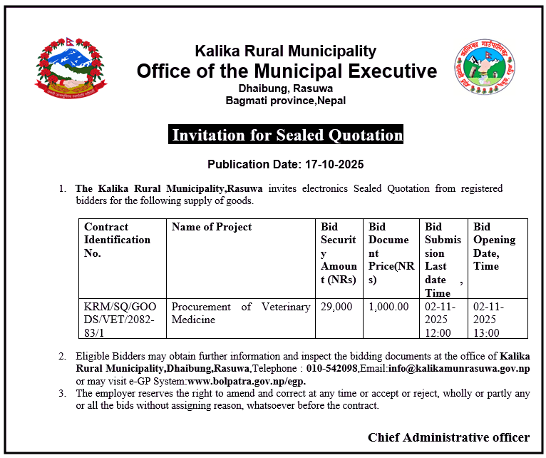 सार्वजनिक खरिद/बोलपत्र सूचना