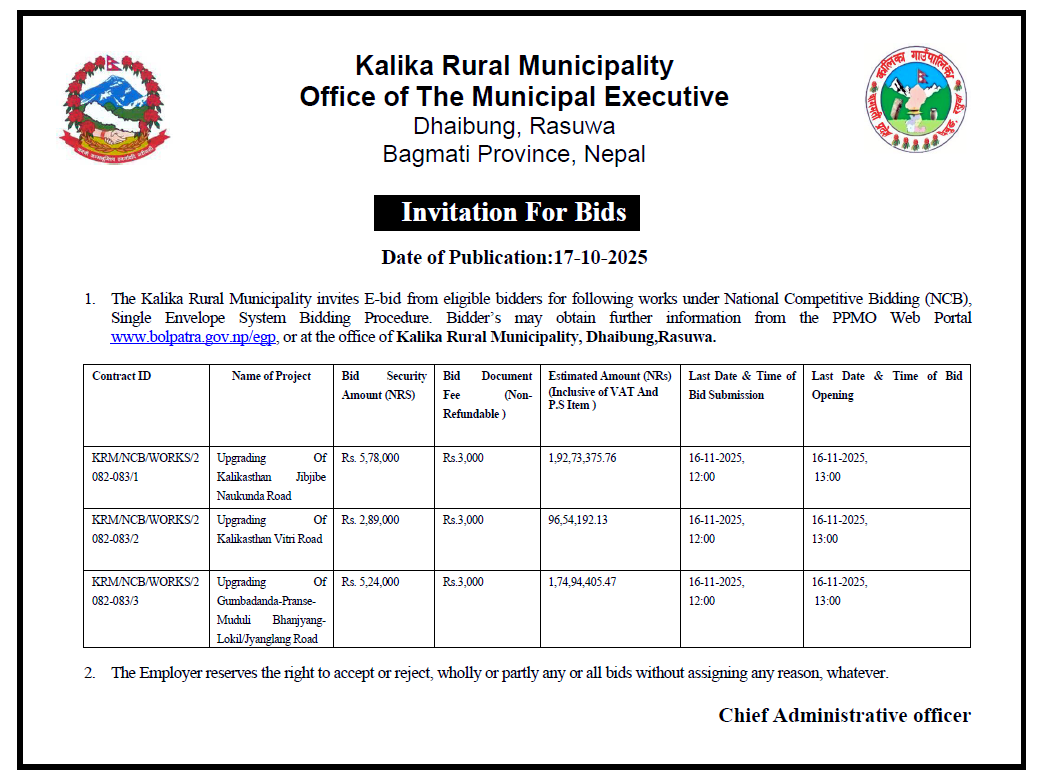 सार्वजनिक खरिद/बोलपत्र सूचना